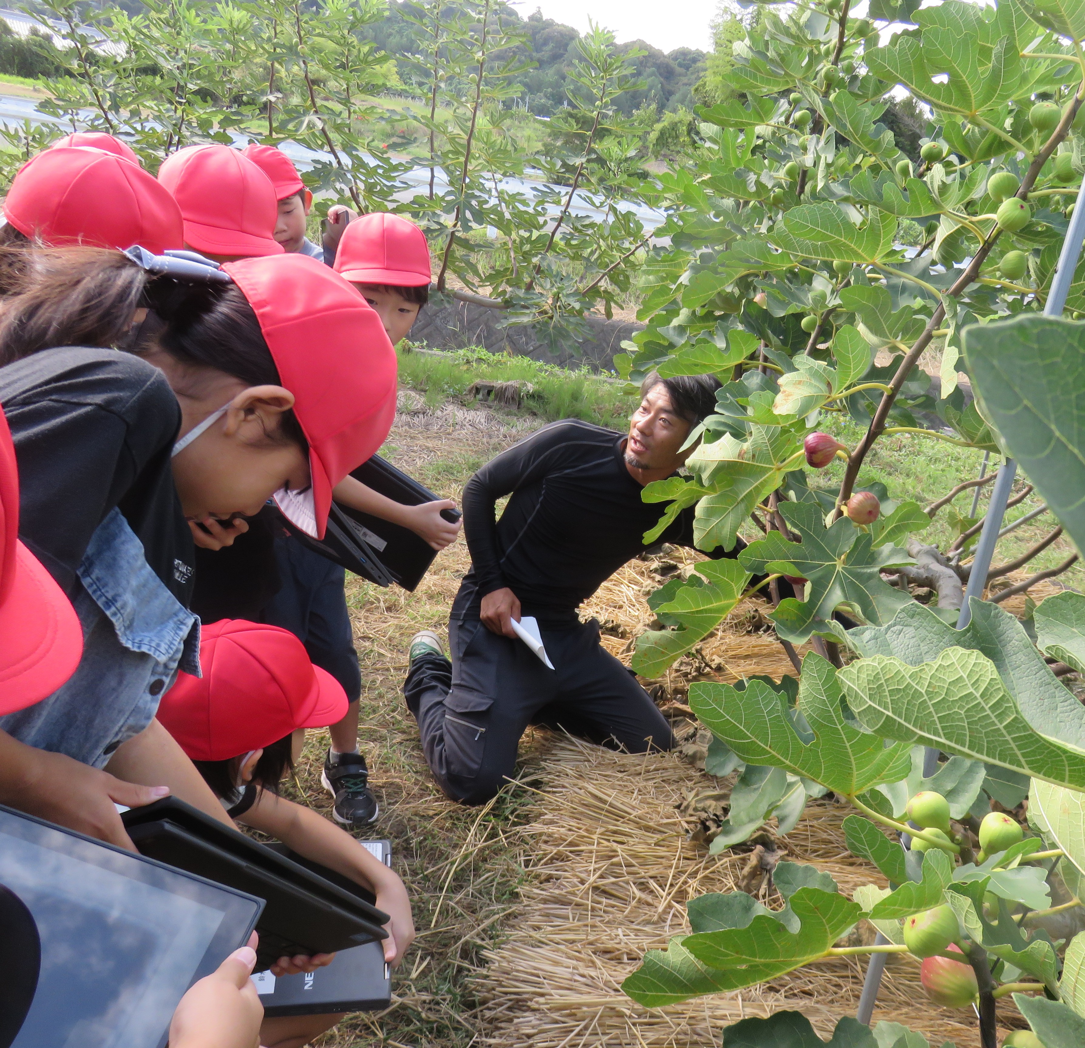 9月30日(火)3年生は社会科見学で農家さんの仕事を見学に行きました。いちじくは木になっていること、たくさん収穫するための工夫を教えていただきました。収穫するときだけではなくて、収穫しないときも何かしらの作業を行っていることに気が付いた3年生です。