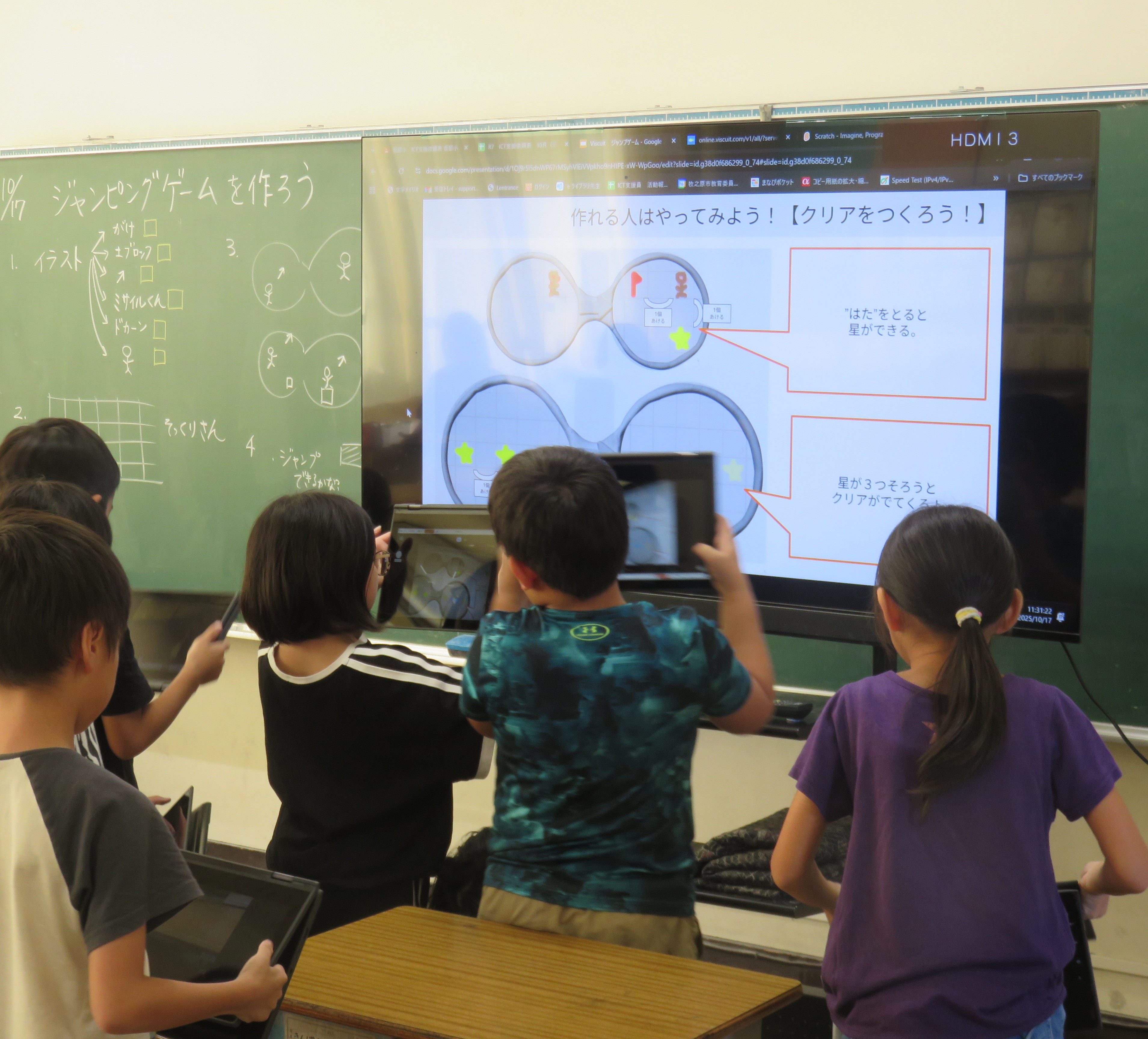 10月17日(金)、3年生はICT支援員の横山先生と一緒に、プログラミングに挑戦しました。
