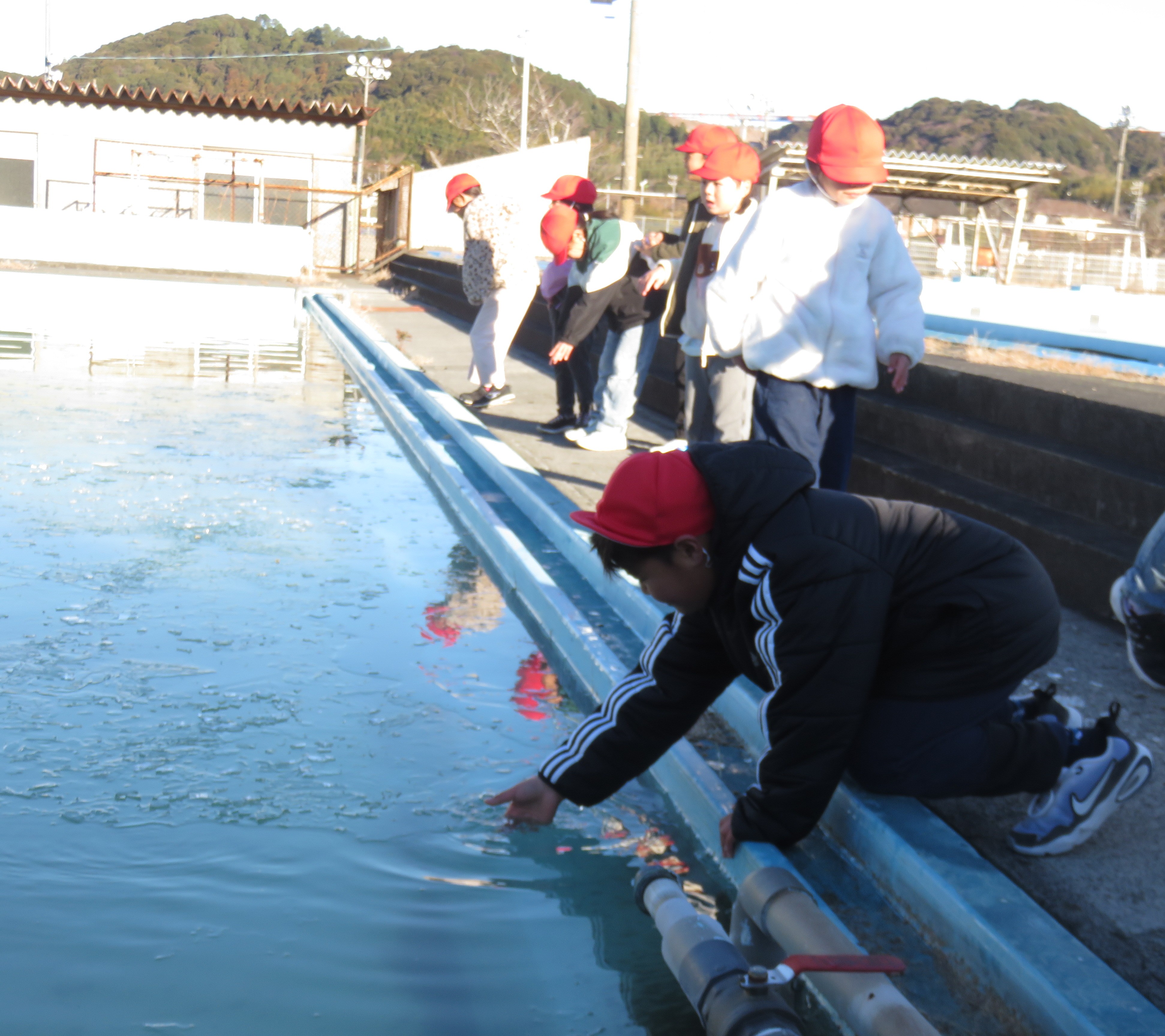 冷たい朝を迎えました。news 2026年1月23日 1月23日(金)寒気が日本列島に来ています。 今日は小プールに氷がはりました。 子供は風の子! 冷たい冷たい、痛い痛い!と言いながら、氷を集めては楽しんでいました。 新着情報 5年生ふれあいサロン訪問 5年生アースランチポスターを作りました。 冷たい朝を迎えました。 ドローン教室が行われました。 今年も青島みかんを寄贈していただきました >> 新着情報一覧