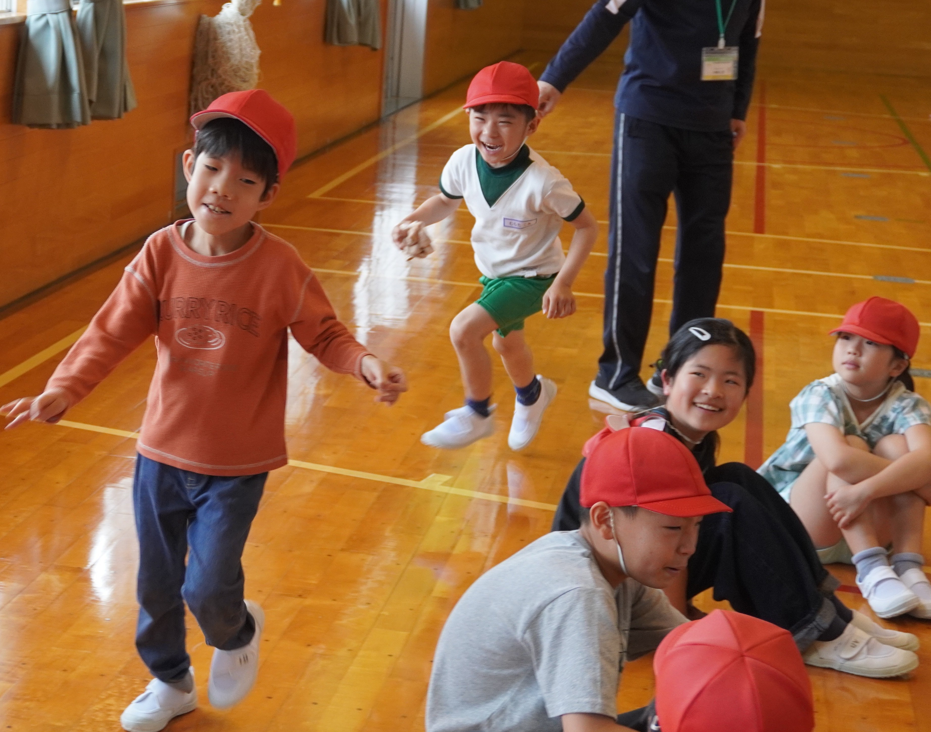 4月20日には、縦割り結成式が行われ、各班ごとに自己紹介をした後、ハンカチ落としでたっぷり遊びました。